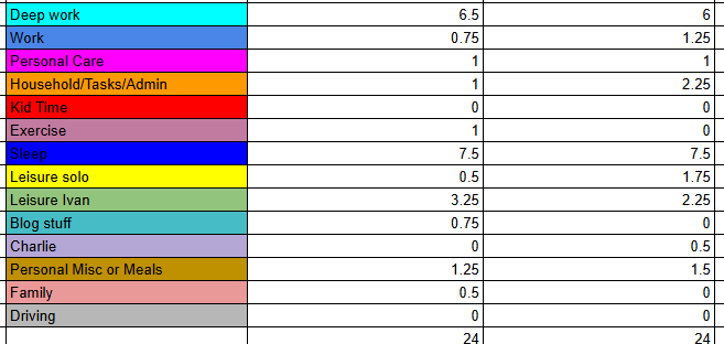 I have "tracked my time" intermittently for a couple years now, but more in the journalistic way. I have my little spreadsheet and jot things down, but I have never worried about exactness or tallying it up or anything. For some reason, maybe inspired by the recent BOBW episode and the suggestion to try time… Continue reading 2 days of time tracking results