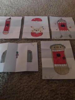 Something else that I really got thinking about last night, randomly, was the idea of how we perceive ourselves. Asher really likes to draw, and has been creating these “fold out” images based on something he saw online.