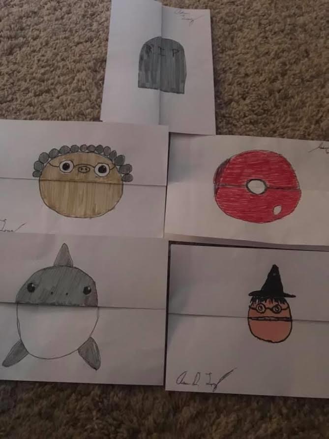 Something else that I really got thinking about last night, randomly, was the idea of how we perceive ourselves. Asher really likes to draw, and has been creating these “fold out” images based on something he saw online.