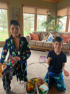 Regarding your shopping trip, it's interesting how much has changed, huh? I have to tell you that I went to Walmart today, for the first time since this started. I've been to a couple other places but have not here. My experience was different. You still grab your own cart but they do have wipes, maybe 25% of people were wearing masks despite there being a decent amount of customers present, and some people shyed away, and that's what I'm used to (zombie like quite and complete avoidance), but not here. Many people would still get close, they were talking, and it almost felt like a normal day. I'm more impressed with Targets approach. And I seen a Dr Oz episode years ago that talked about licking your fingers, and germs, so I haven't done it for a long time. Basic training for this I guess. HahaIm glad that your Easter turned out nice. The boys look happy and it looks like the bunny did them well. Awesome! ~PB