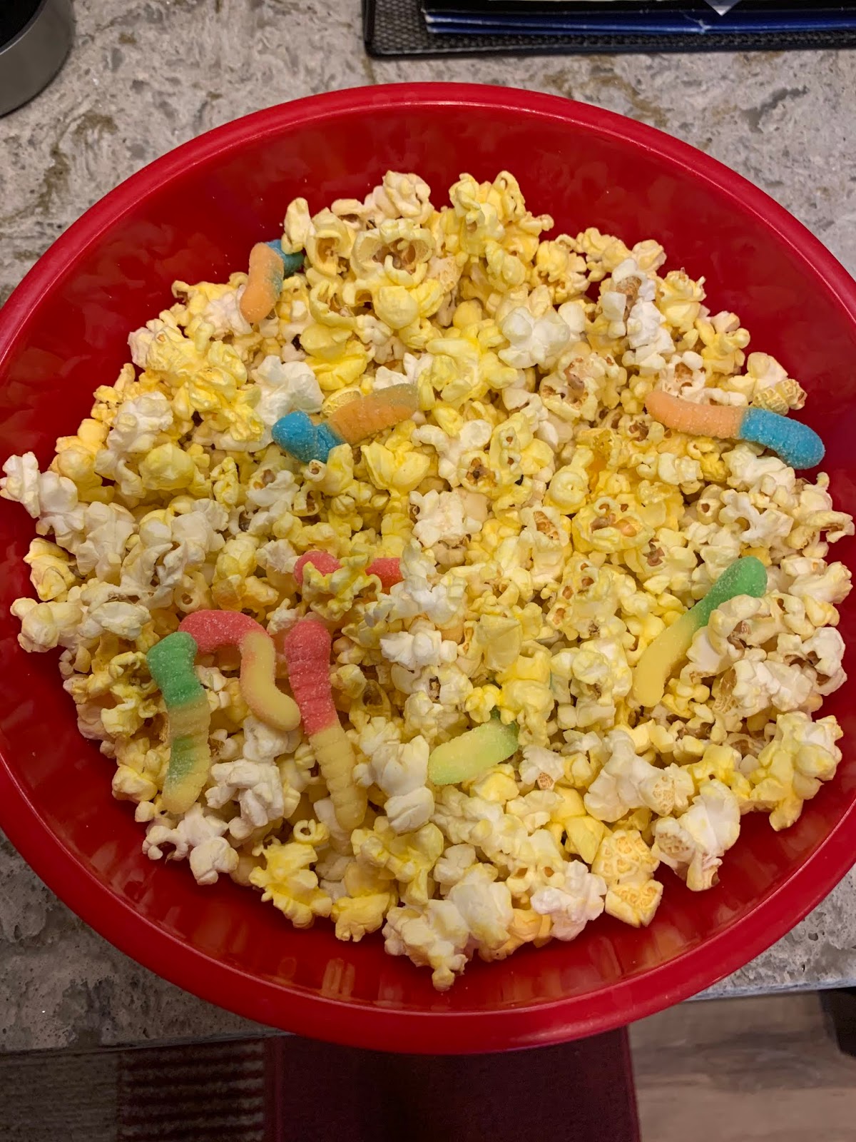 Yesterday my lounging from the afternoon was eventually cut off and I did get another good hour of work in and Ivan mopped the kitchen floor. So that was productive at least. We then later decided to order some Marcus theater curbside pickup popcorn and have a movie night. The popcorn didn’t really do it for me- it was $10 for a big bag so it wasn’t cheap, and it just didn’t taste the same to me at home in my living room.