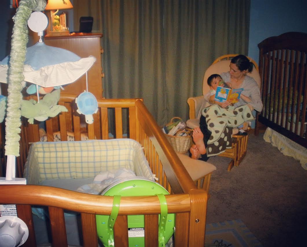 A sweet old photo I ran across from when Asher was a baby…I really cherished those sweet moments reading to the boys in the glider while they drank their sippy cup of milk before bed. He was around 15 months old here.
