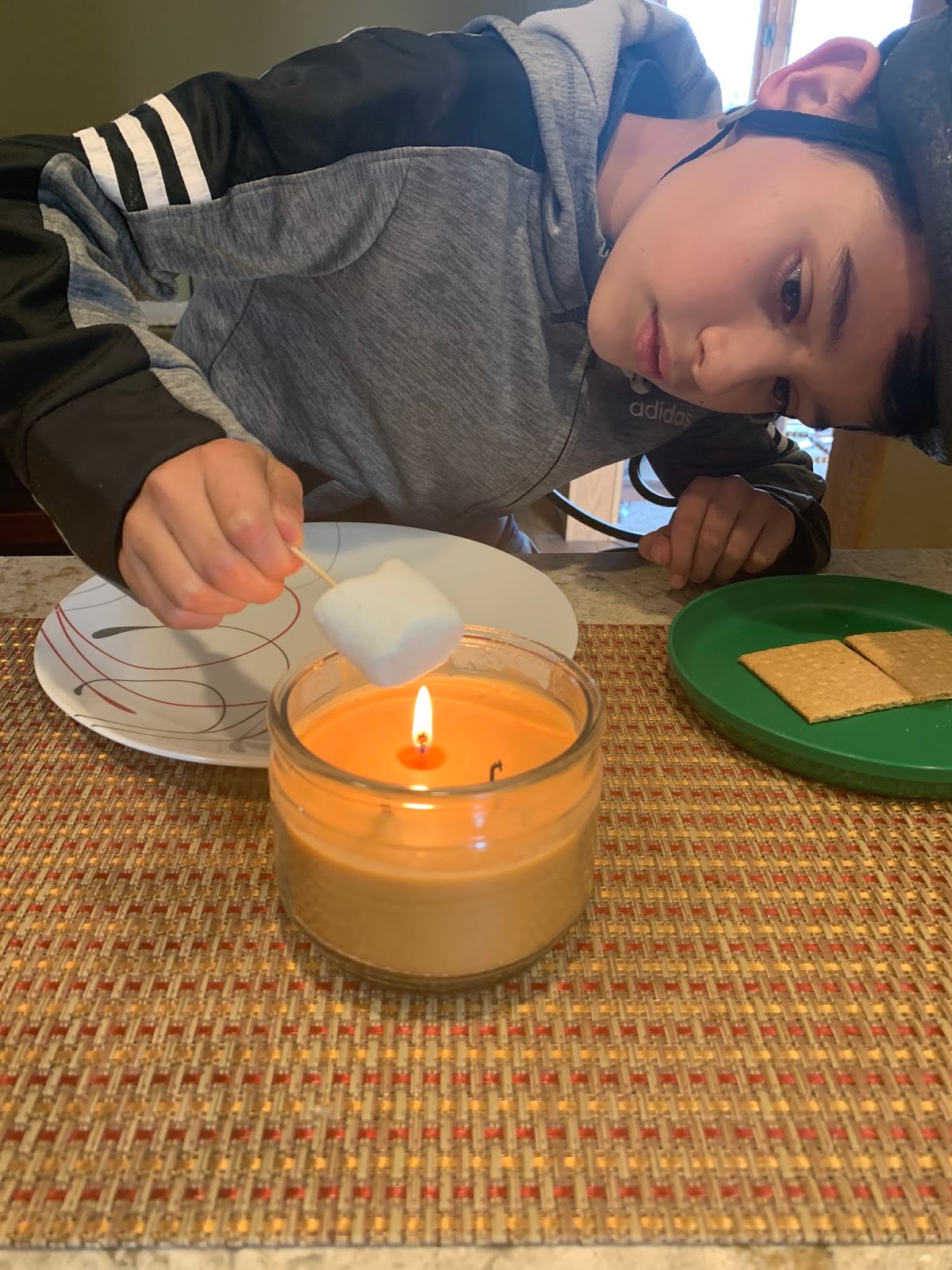 They saw a clip of a movie in passing on TV- I think it was maybe The Wedding Planner with Jennifer Lopez and Matthew McConaughey- where they roast marshmallows over a candle flame. I suggested that this probably isn’t the best idea in actuality but they tried it anyway. I’m sure they consumed a nice dose of candle scent chemicals, but at least they limited their s’mores to just 2 each…