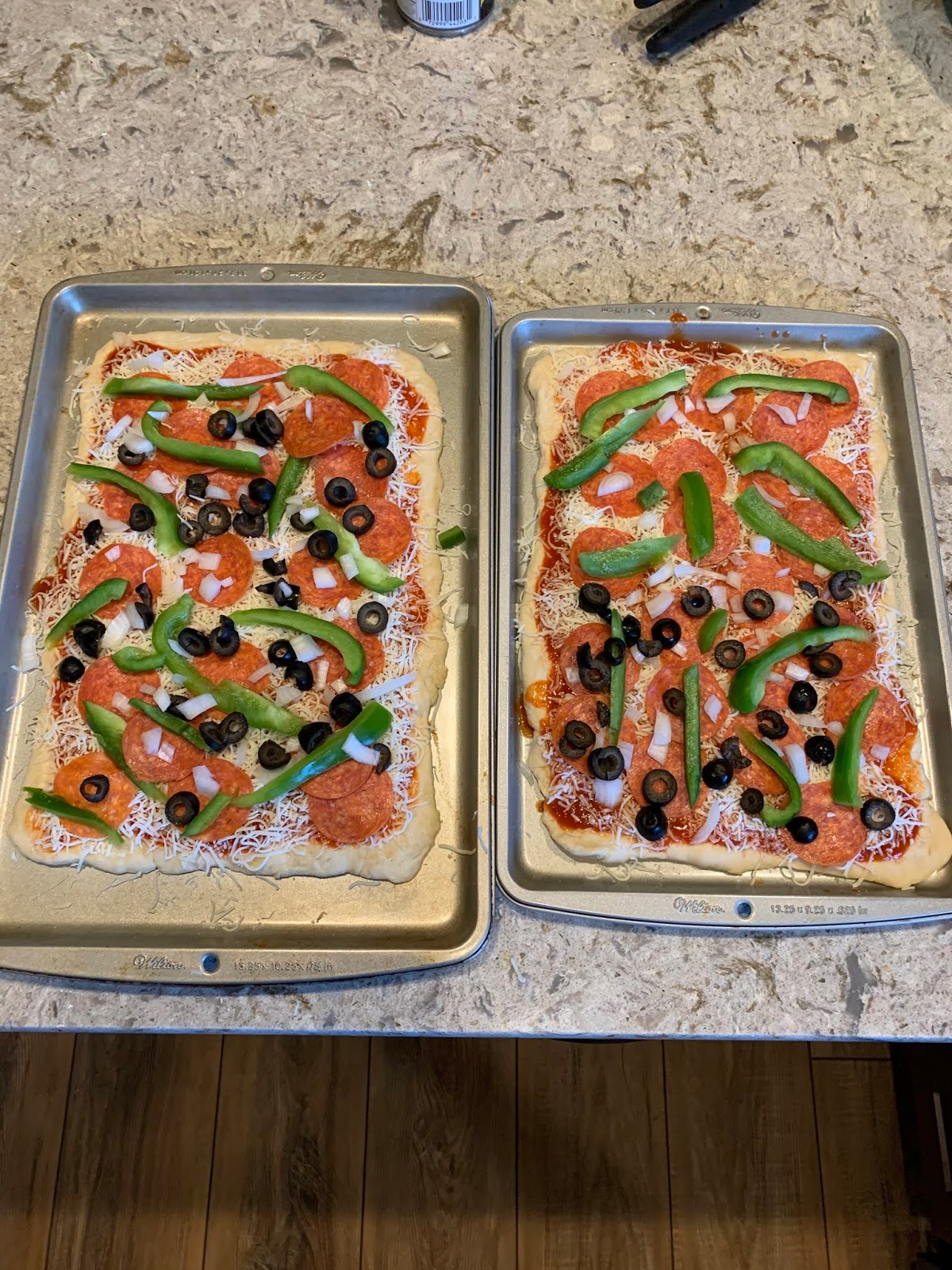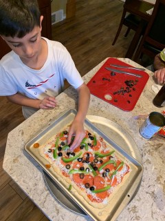 - Made homemade pizza! (Okay, kind of. I just bought one of those “make your own pizza kits”. Had planned to actually make our own dough, etc but ended up putting all the ingredients back since I just had SO much other stuff already in the cart last time and I didn’t want to buy everything I would need this time. Maybe next time.)