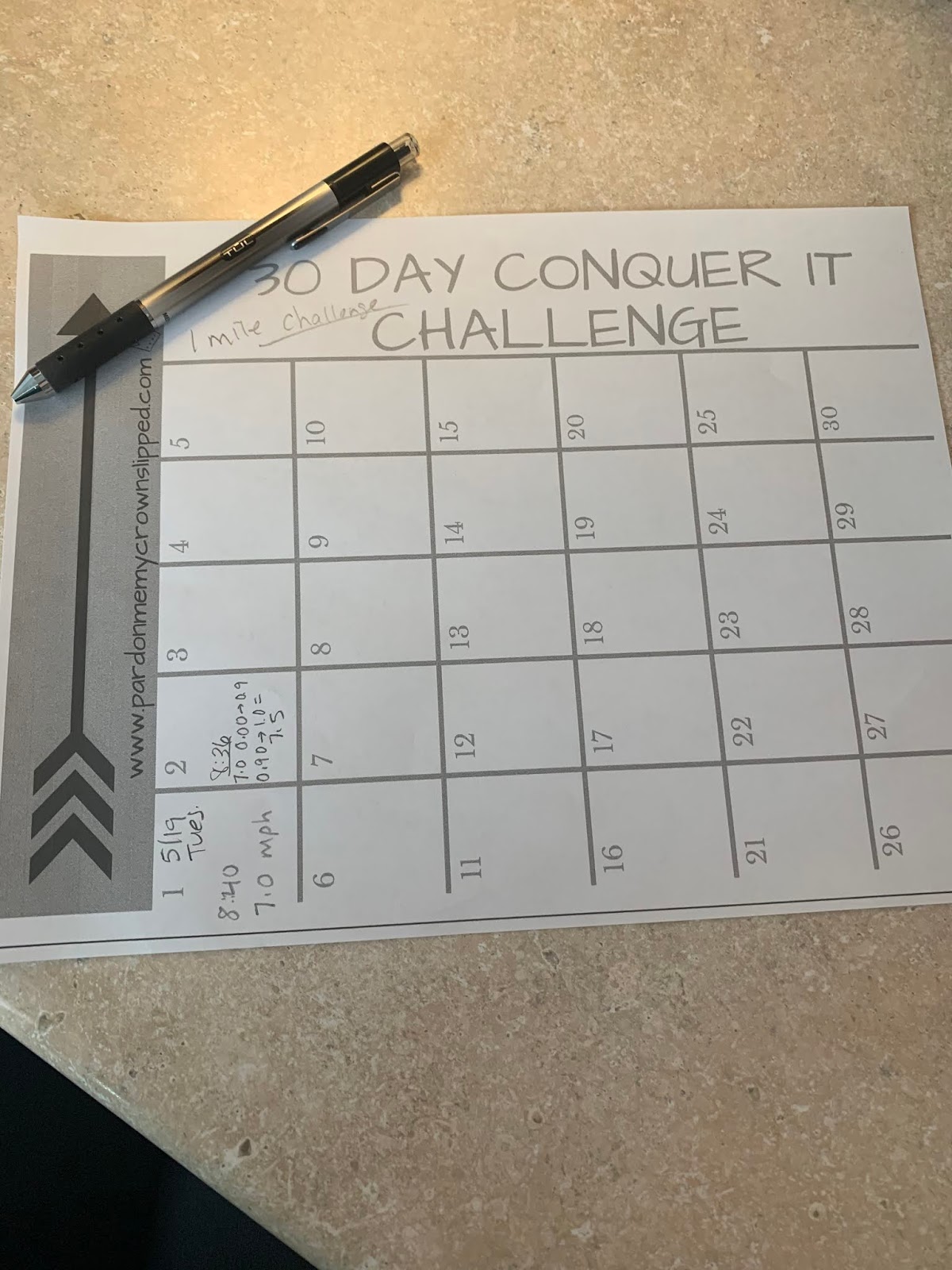 In other news, the boys and I have started a “Run 1 mile Everyday for 30 days” Challenge! We have just been taking turns on the treadmill since our road is all ripped up. Anyone want to join us??? 🙂 We are only 2 days in. I printed this little calendar for each of us to keep track of our times. This in addition to any “normal” workouts- just a fun little way to keep us moving, together!