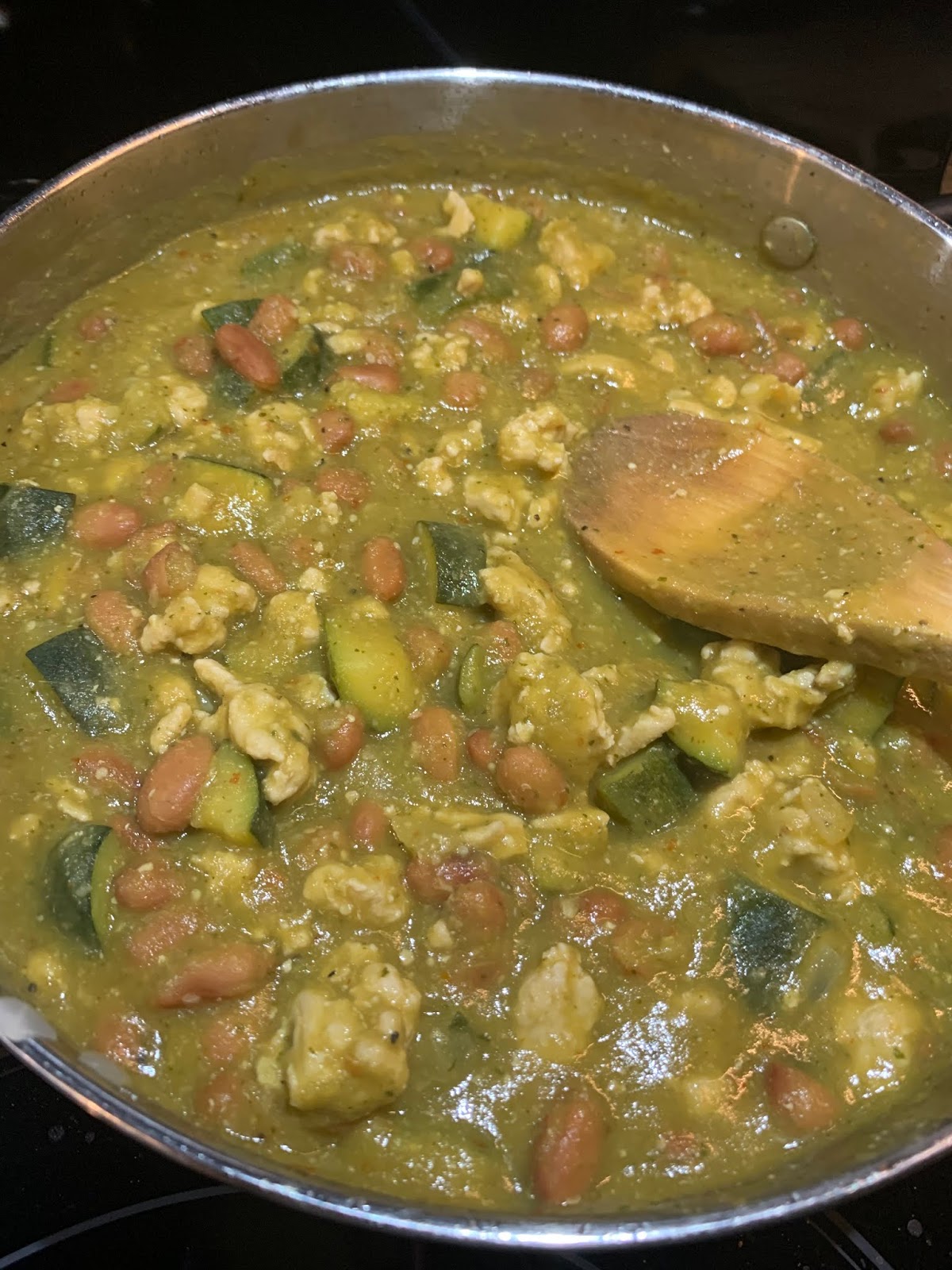 5. A delicious spicy meal of ground turkey, onion, zucchini and pinto beans simmered in a salsa verde/ arbol sauce. SOOOOO GOOD!! Really, I outdid myself on this one. LOL!! 😊