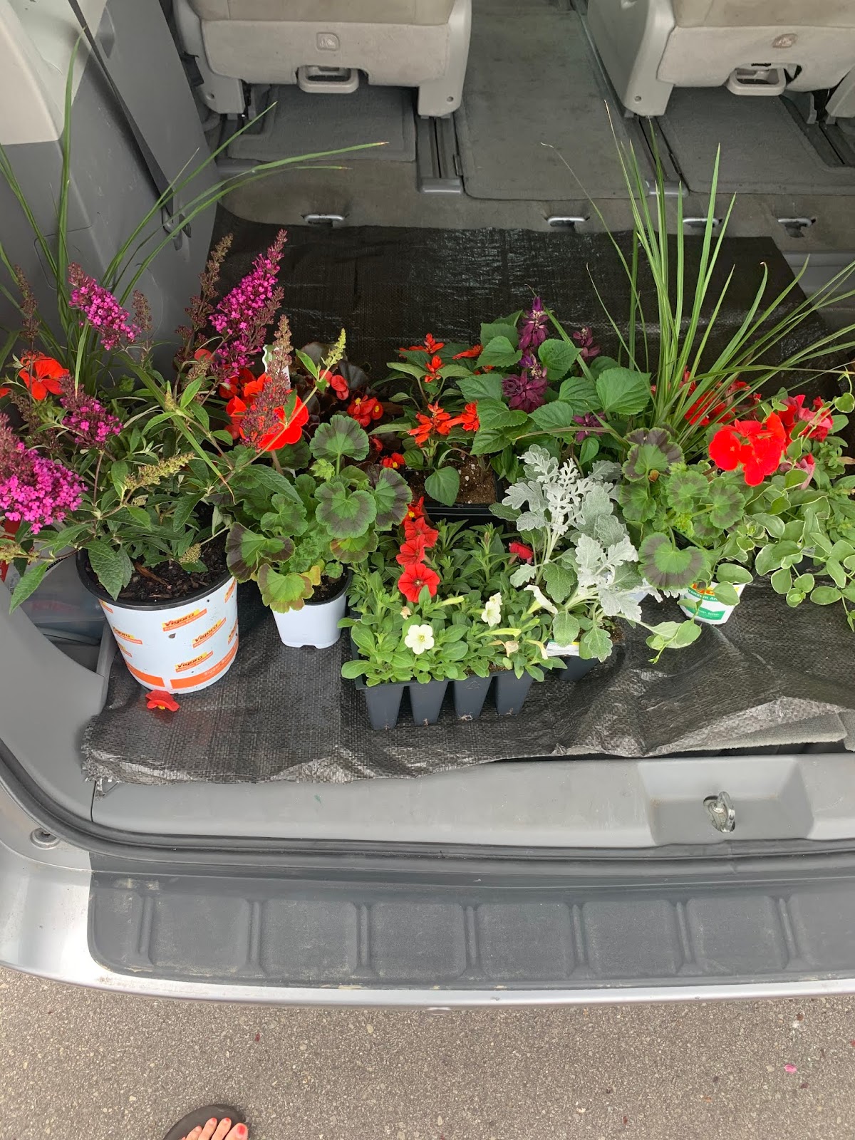 Yesterday I went and picked up a partial flower haul for the front yard. I wasn’t really “in the mood”- I just went to Home Depot and it was super crowded, and the whole experience of wearing a mask and trying to dodge ALL the people just wasn’t super duper fun- but I grabbed a few things to get started. Hoping I can get some more this week!