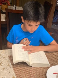 | Reading with his buddy. |