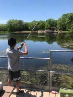 Holy cow! He called me afterwards and I could tell he was SO excited. He must have been going nuts! Asher caught a bunch too (but not this large). They measured, and this wide mouth bass was 20 inches long! Nice going buddy! I can guarantee he would not have had THAT excitement at our house on a Friday afternoon. š