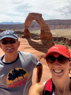 My Dad and me in front of Delicate Arch in Arches National Park last summer. Plus, a very cool Grandpa rappelling down a 125 ft cliff with us!