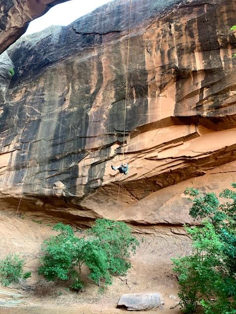 My Dad and me in front of Delicate Arch in Arches National Park last summer. Plus, a very cool Grandpa rappelling down a 125 ft cliff with us!