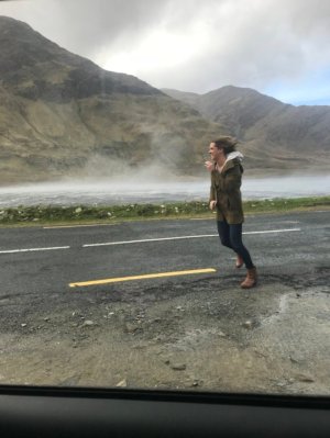 | Hard to tell in the photo, but I am just cracking up as I’m getting blown away in the wind! |