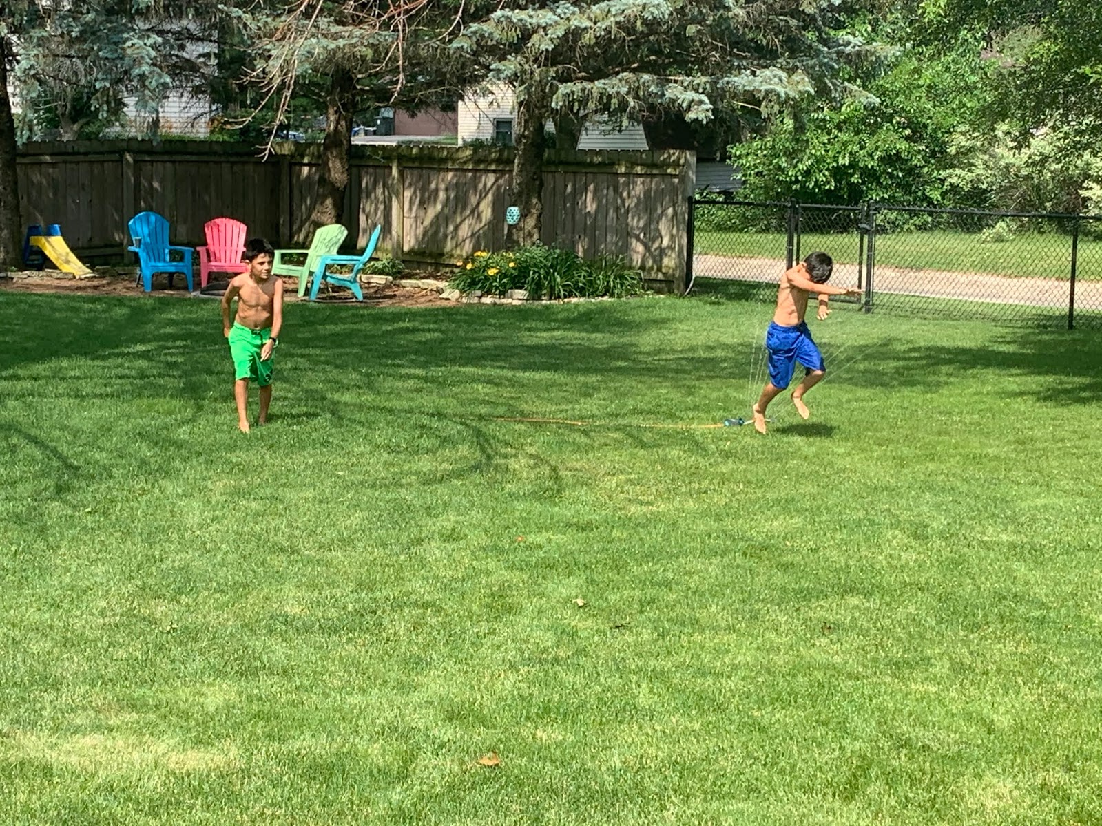 I suppose I could maybe take a half day tomorrow and take them to a little beach or something. Hmm. I’ll have to think about it. For today, the good old sprinkler plus the ice cream sandwiches that are in the freezer will have to do. 😉