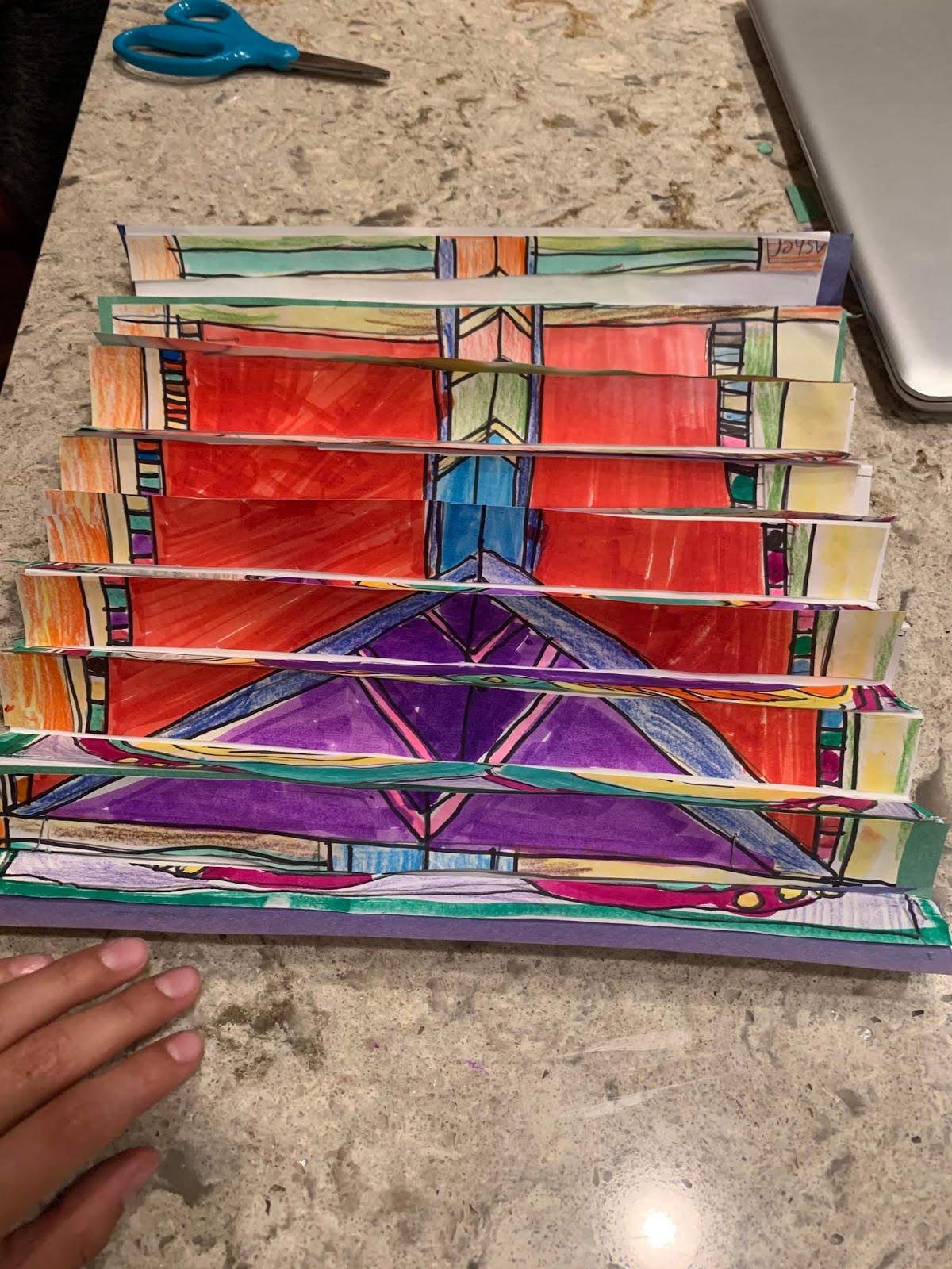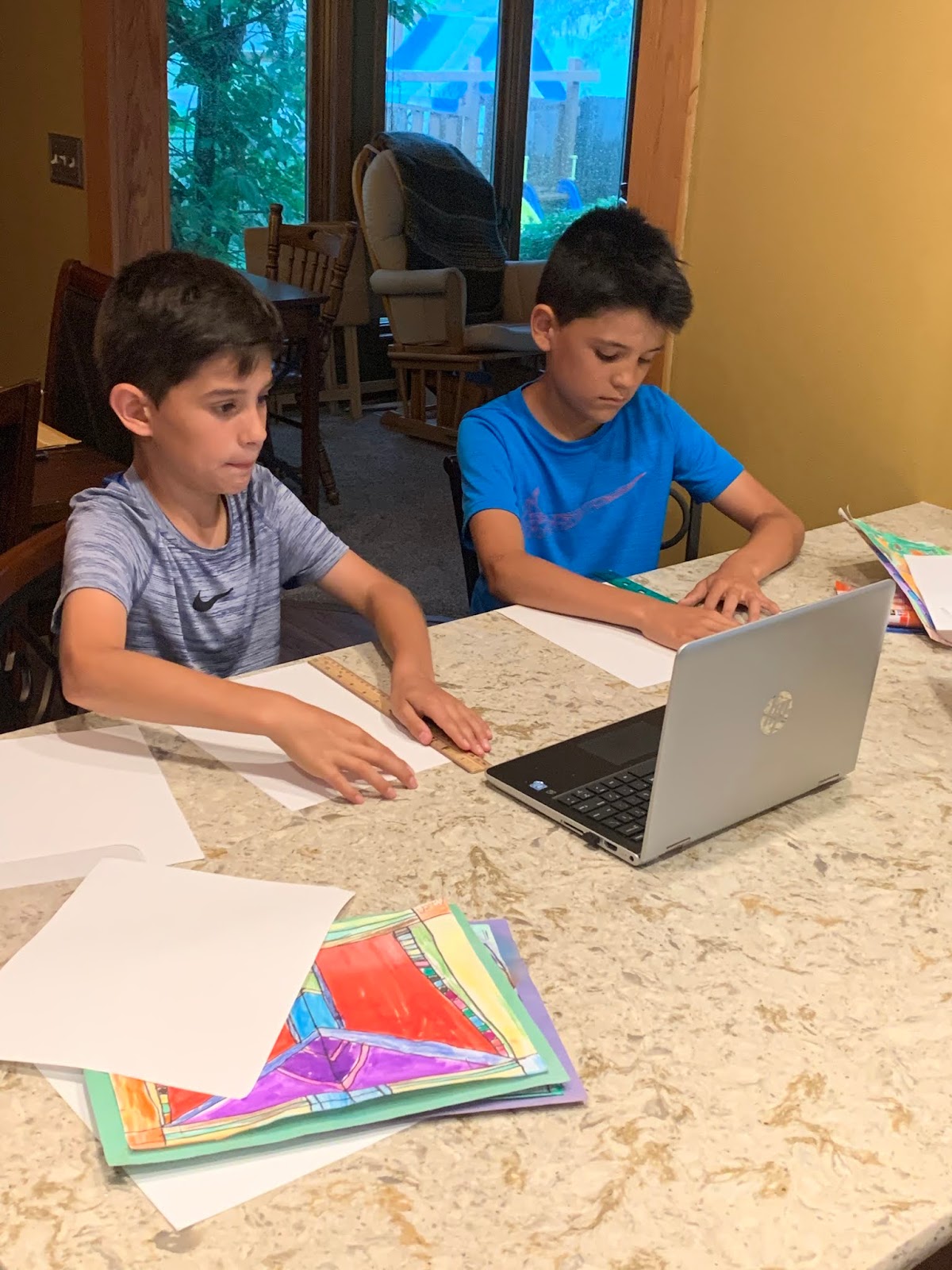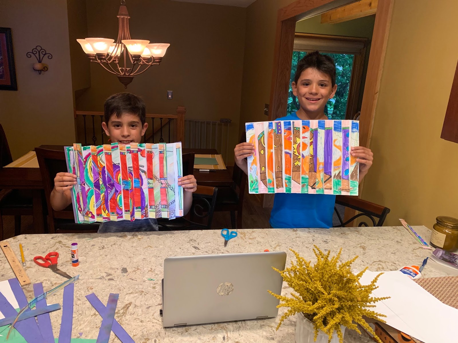 Well, the boys ended up LOVING the project! The young art teacher did a great job of engaging the kids all over the Google Meet platform, the boys got really into it and they were proud of their finished projects.