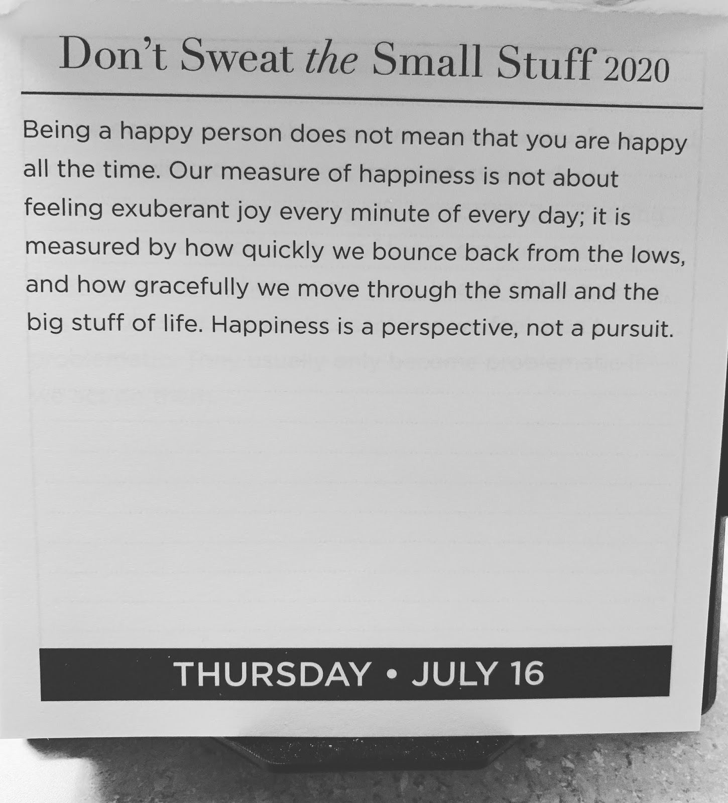 I am grateful for this quote this morning. It made me pause, which meant to me that maybe I should share it. I feel like this is kind of what I’m all about lately- not being “exuberantly joyful” every second, but striving for an overall, increased level of happiness (which I believe ultimately stems from an attitude of gratitude). I feel I have been able to “bounce back” from things more easily than in the past. I hope this is a sign that I’m moving in the right direction on the happiness scale. 🙂