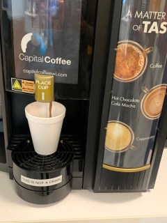 | Sorry, I got nothing today. The only pic I took yesterday, of me enjoying a hot drink while at one of the aforementioned appointments! I guess they weren’t all bad. 😉 |