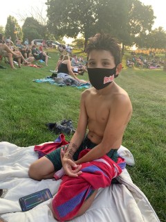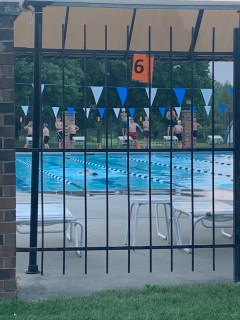 | The parents had to watch from a distance, outside the pool gates. We all sat on blankets 6+ feet apart. |