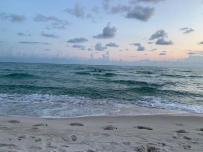 8:30 a.m. Choose from following activities: walk on the beach, move down to chair by the ocean to continue looking out at the ocean, eat breakfast, go in hot tub or continue sitting in the gazebo