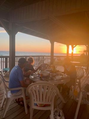 7:00-11:00 range: Figure out dinner and evening plans. Some nights we ate in (we got steamed peel and eat shrimp one night, got pizza another night, one time we just had appetizers for dinner, etc.), which meant swimming after dark in the pool for the boys and adults having drinks/ hanging out on the deck until late. Other nights we went out. One night we went out on the fishing pier and watched a guy catch a shark(!), another night we went out a little earlier for a really nice seafood dinner, one night we ended up at the Pier Park area and rode the Sky Wheel/ kids did a trampoline jump thing, etc.