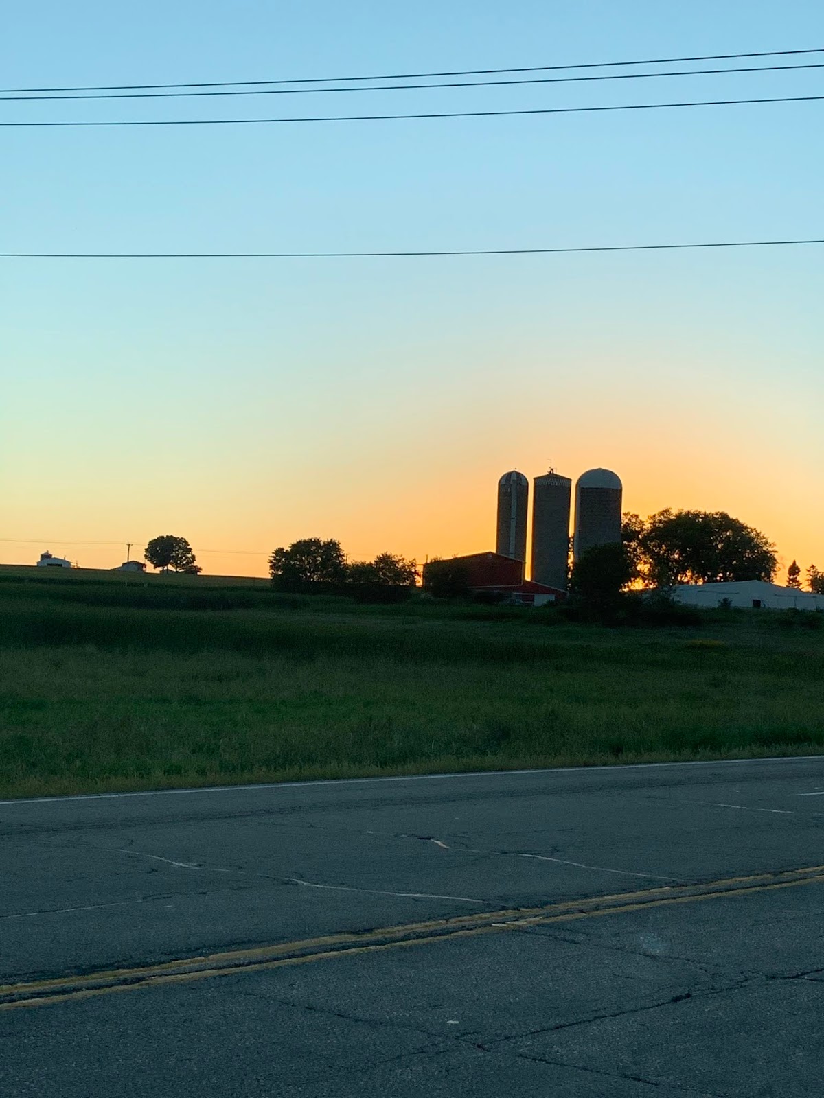 1. A sunset shot on our way to a 7:30 pm swim practice out in a nearby little country town the other night. I loved the sun setting behind this silo and pulled over to snap a pic. Wisconsin the Beautiful!!