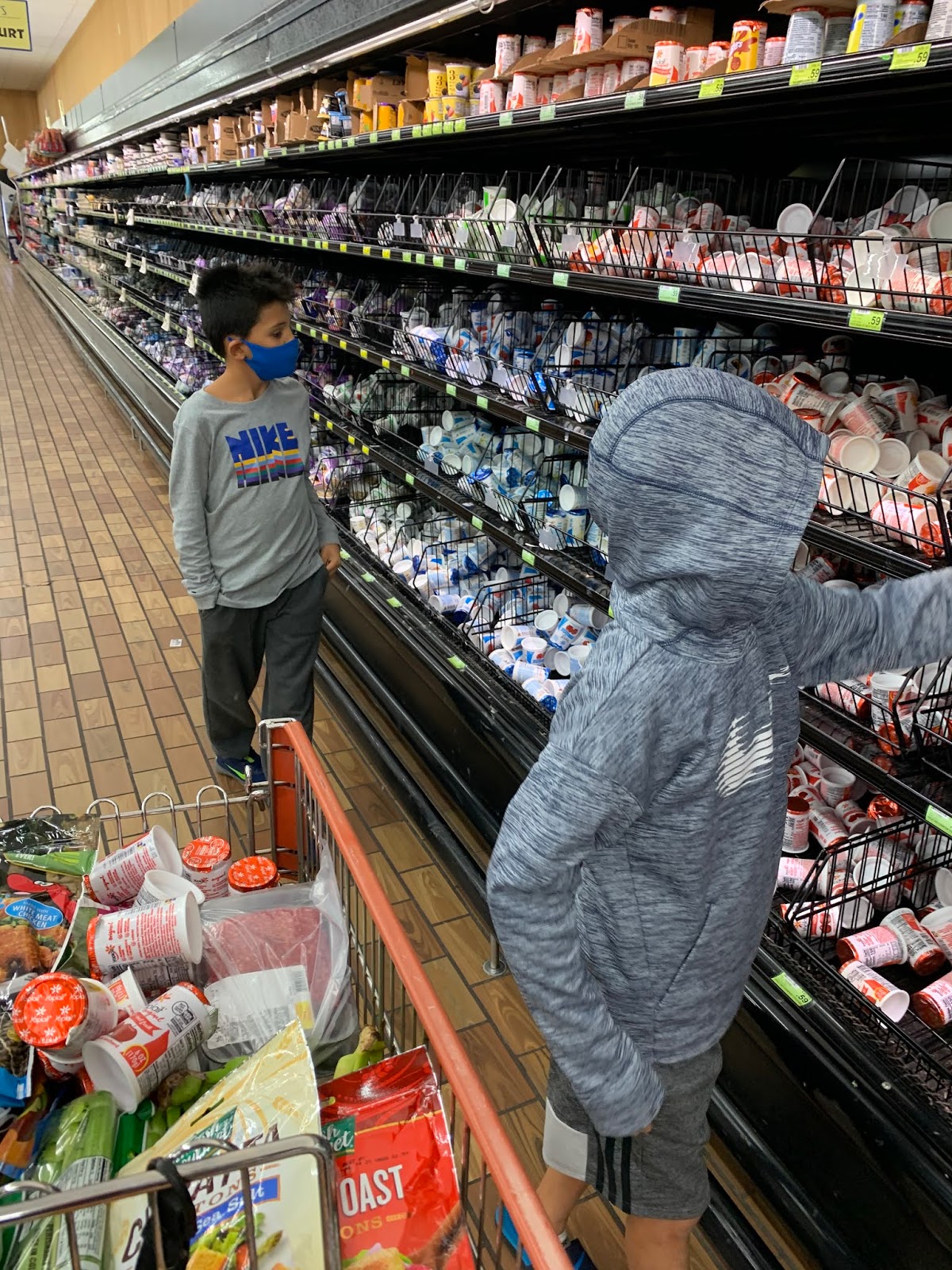In closing, and in part because I have no new photos to go along with the above school post….. a picture of the boys GROCERY SHOPPING with me last night! This was literally their first time in a grocery store since at least February. They were excited!!! They also completely blew any hope of sticking to a grocery budget.