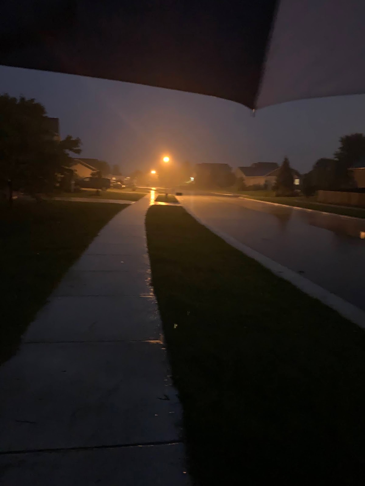 So, I suited up in a sweatshirt, raincoat and an umbrella and headed out. No headphones, no music, no podcast. Just me, the rain, and the night.