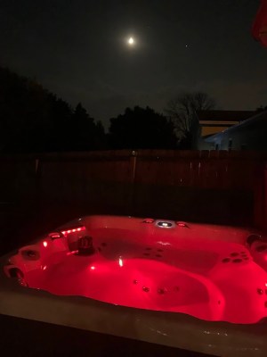 And finally, I just have to say again: the weather has been AMAZING. We are still LOVING the hot tub every night. I snapped this pic the other night, when the moon was bright and the air temperature was just cool enough that the water felt great but not so cold that I turned into a popsicle after getting out. 🙂