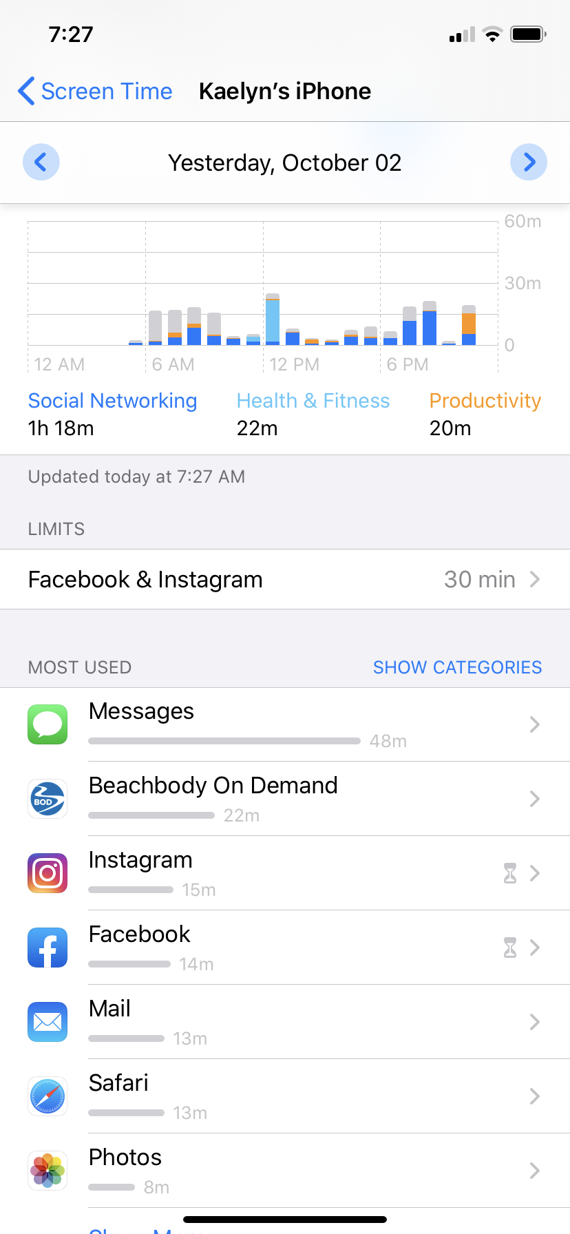 Perhaps this whole concept makes me sounds a bit pathetic, for “needing” to set actual physical limits on my phone for this. Or maybe 30 minutes on social media per day still sounds like a ridiculously large amount to you. I don’t know. All I know is that it seems to be helping me feel less distracted, and it definitely decreases all of the negative garbage I am forced to consume.