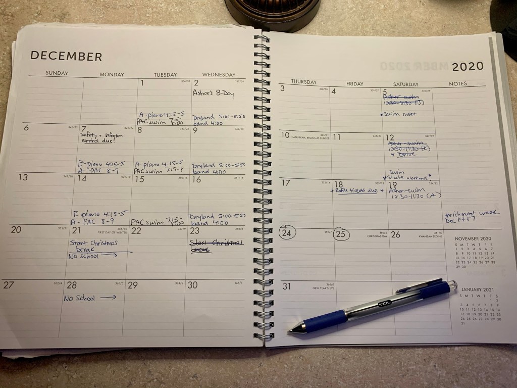 There are (many) people out there who have very fancy, elaborate planners/ calendars. I am currently not one of those people! (Though full disclosure, I might try out a new, more elaborate system for 2021….to be determined).