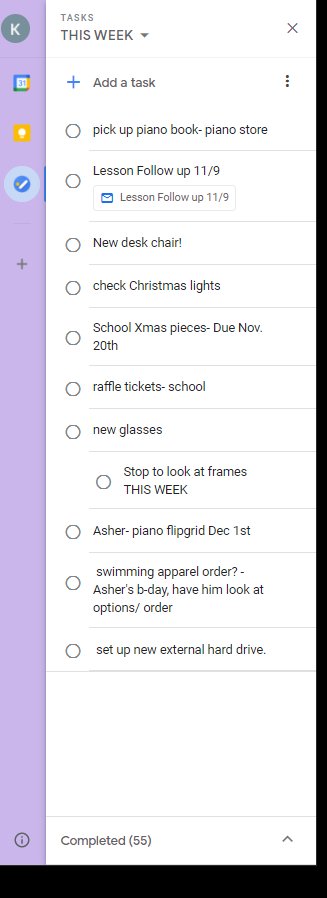 I also love that I can actually just drag an email and drop it in the to do list, too. (See pic above- “lesson followup”. If I click this, it will open that email for me. It’s a great way to stay on top of tasks that come into my email.)