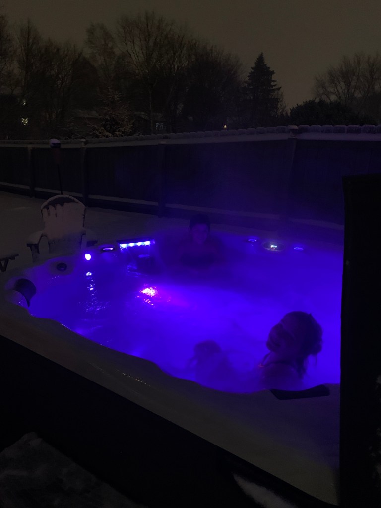 Our old neighbors were in town and she stopped by for a dip in the hot tub in the snow with Asher! 🙂