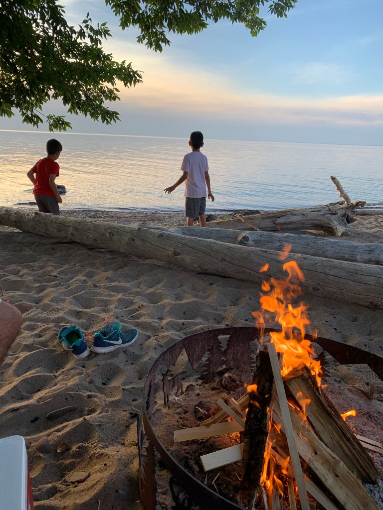 Still home so much. Some outside play with friends. Trampolines. Sprinklers. Asher- open water lake swimming! 4th of July with no big fireworks to attend. More fishing and some golfing. Ethan’s 12th birthday! River tubing. Upper Michigan!!! Amazing. Walks every single morning with Ivan before work.