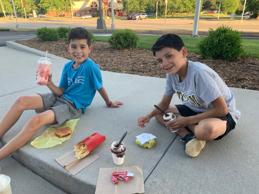 Some things slowly reopening. Tennis lessons again. Gym pool open- will always remember biking with Asher to the pool some mornings, then sometimes biking after to eat at McDonalds outside on the curb!! End of this strange school year. Bonfires. S’mores. Our road got re-done-= huge construction mess all summer. Fishing! Bike trails. Reading. Gardening.