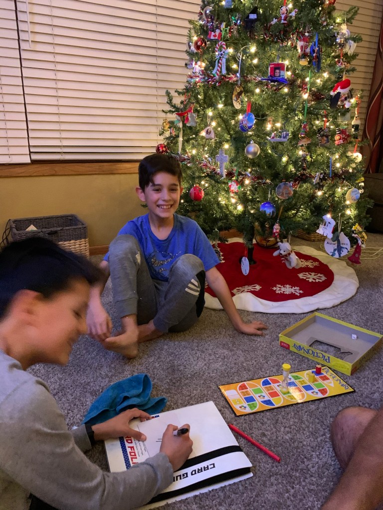 More leaves. Yard clean up. Virus trending way back up…more shutdowns. Ivan’s mom’s trip here cancelled. Drive thru holiday lights. Decorating. A quiet Thanksgiving. Gratitude chain making! Apple pie. Workouts with Ethan. Swim practices/ soccer all cancelled again. School returned virtual Thanksgiving week through January 11. Cooking with the boys. Game nights.