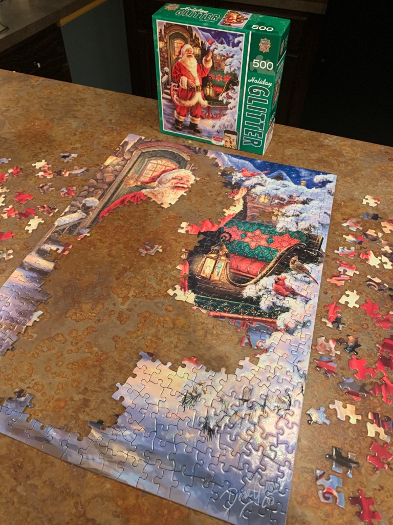 I LOVE puzzles! I got a new one for Christmas but haven’t started it and don’t know when I will. The best place to do a puzzle is our dining room table and I think it would be a disaster with Paul around. So that puzzle and others I’ve bought and received in the last year probably need to wait like 4 years. Ha! But someday I can do a puzzle. One year for my bday I had a puzzle party. I had people drop by on a Saturday afternoon and work on the puzzle. I had snacks and treats. It was super fun and a great way to catch up with people. I mean who doesn’t enjoy a puzzle right? Plus my bday is in feb and that is a time of year when you feel drawn to things like puzzles!
