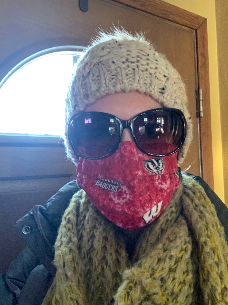The leg day at the gym felt GOOD but also way TOUGHER than I remembered. I need to find a different mask, I think. My usual fleece Badgers mask seriously felt like it was suffocating me. It was fine the other day for shoulder day, but on leg day, your heart rate really gets up there. I was huffing and puffing and a few times thought, OMG I NEED AIR!! I’m going to try a different one and see if it feels better.