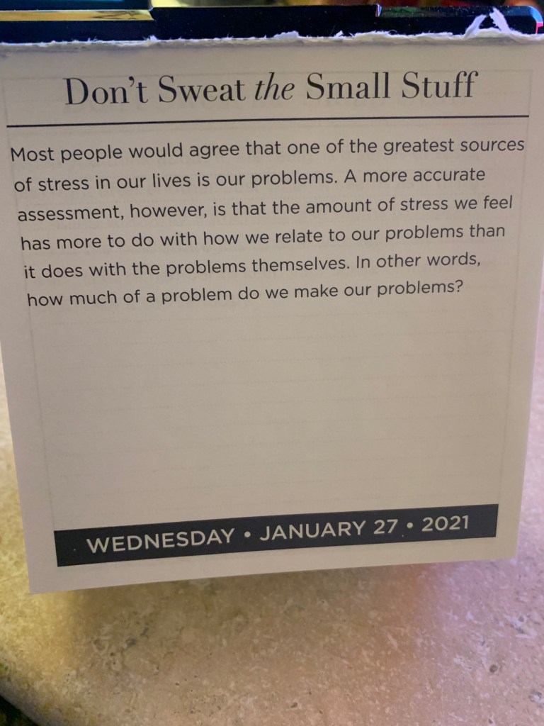 Side note: my calendar had a GREAT quote this morning. Kind of a little lighbulb moment…. I mean, yes! This is what it’s really all about. “How much of a problem do we make our problems??”