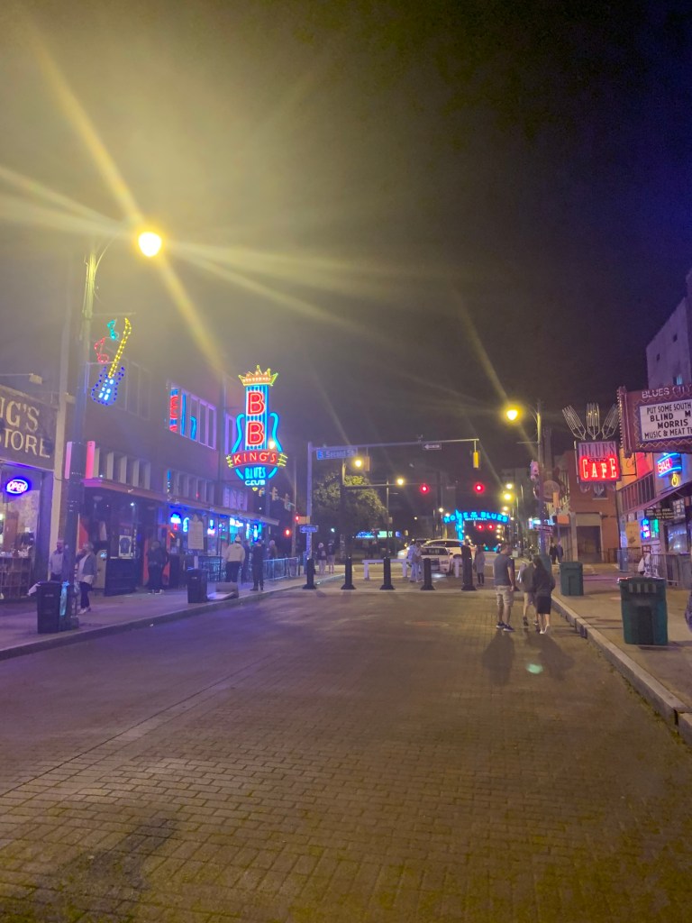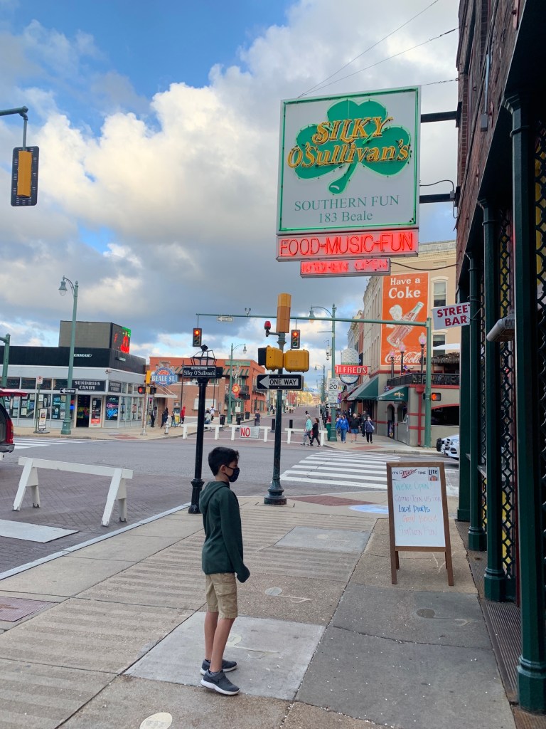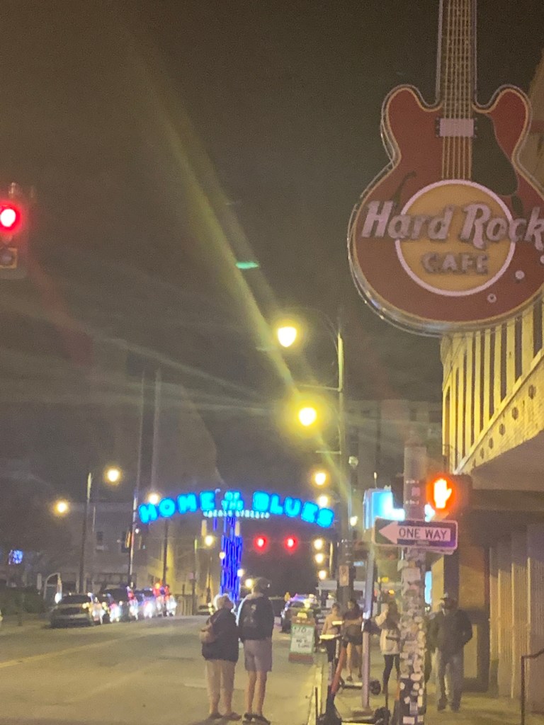 We had the best time!! The piano player was SO GOOD and he played and sang non-stop for the almost 2 hours that we were there. (We had to watch him through big plexi glass shields that hung on either side of him, but oh well! Still in covid times. At least there was music and the food was good!). Turns out that Beale St. got super busy on Friday and Saturday, so I was so, so, so grateful that we ended up getting to eat/ hear music on Thursday when it was so quiet. This was our only “night out” on Beale St. of the trip.