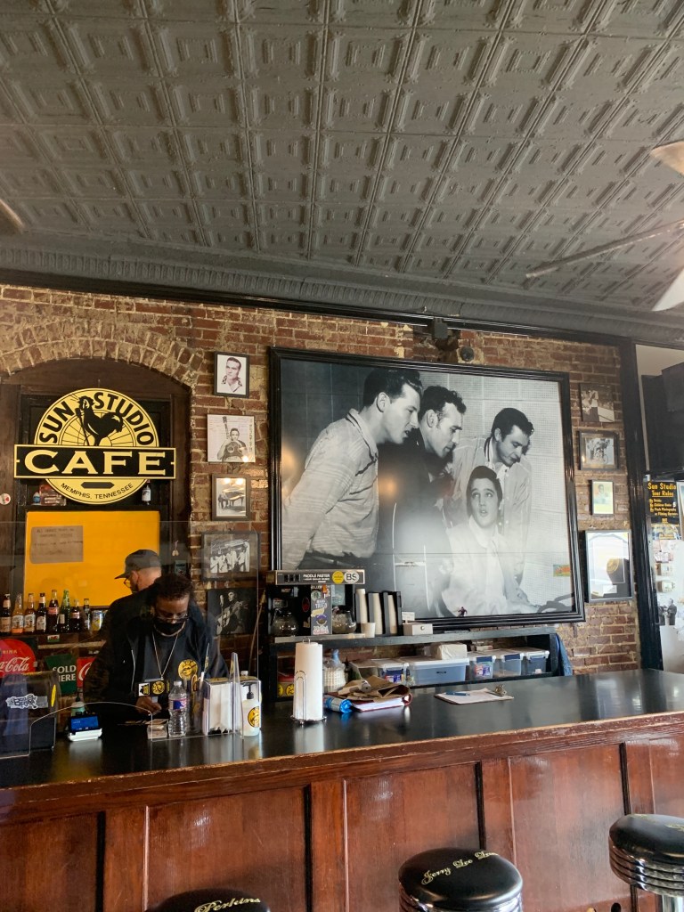 Since it was a shorter trip, I wanted to take full advantage of the first day. After unloading our stuff, we headed straight out and walked the few blocks to Sun Studio. This is probably the most famous original recording studio in Memphis, and is most well known for being the place that Elvis Presley walked into as a kid, asking for a chance to play for them. After the audition, the owner, Sam Phillips, almost said, “nah” and planned to pass on him, but when he heard Elvis casually jamming to “It’s Alright” with his band during a break, his ears perked up and he (fortunately) changed his mind. The rest is history!!! Crazy! I guess sometimes it really does just take one lucky break….. 🙂