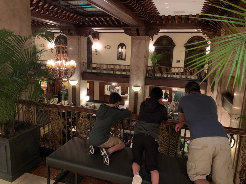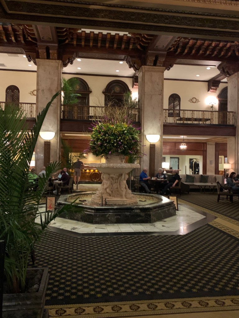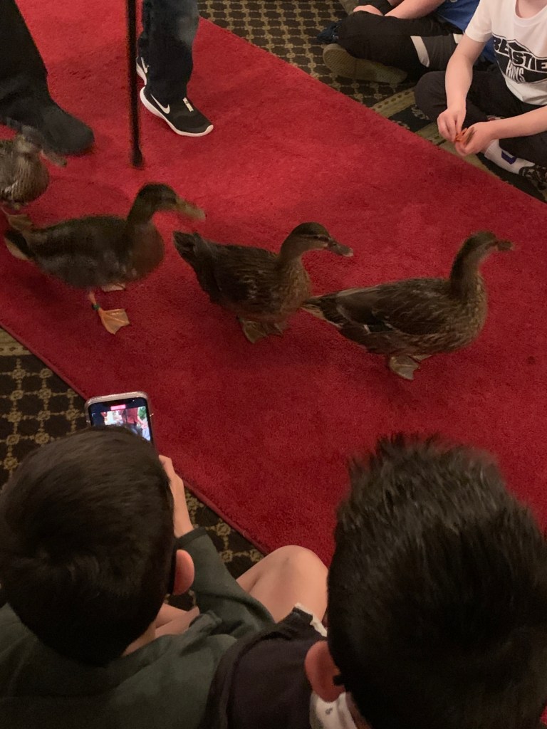 From Sun Studio, we walked ~10 minutes downtown to the famous Peabody Hotel. It is a fancy, historic hotel that is known for the “Peabody ducks”- ducks who live on the roof of the hotel, but march down each morning to swim in the (indoor) fountain in the hotel lobby all day. Then they retreat each evening with a special ceremony. It’s just a silly little thing, but if you’re in Memphis, you have to see the ducks! The hotel was just gorgeous, too.