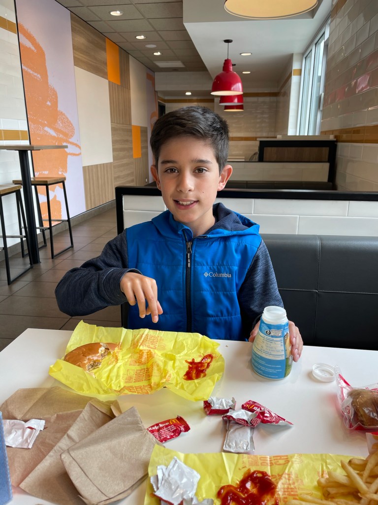 After cheeseburgers and fries, we headed to the clinic. It was a short wait with just a few people ahead of us, then his turn! He is traditionally not a big fan of shots and needles, but I had told him that in my opinion, the Pfizer Covid vaccine was probably the least painful shot I’ve ever gotten. Barely even felt it.