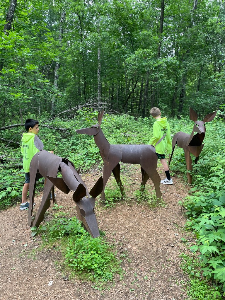 We stopped at Culver’s for a quick dinner and then hit up this super cool sculpture park. It was just a short walk through the woods with stops along the path to see various sculptures made of all different materials. The boys really loved it! I’m super glad we stopped.