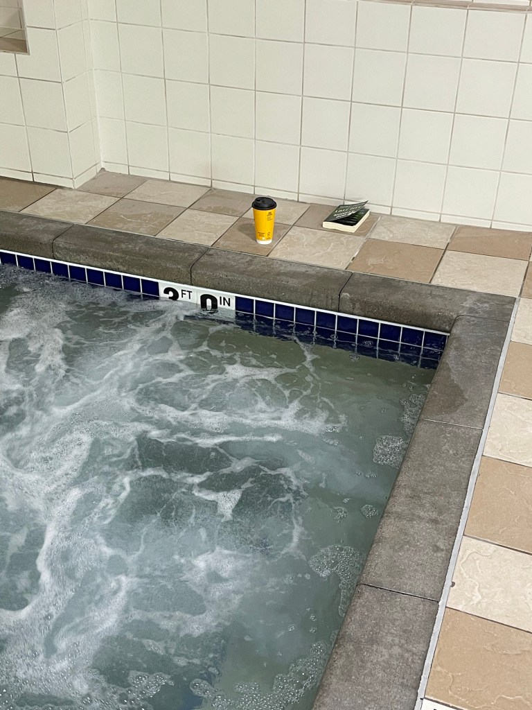 It was pretty nice just chilling at the hotel during the day alone, though. I got some good work done and one day took a hot tub lunch break: