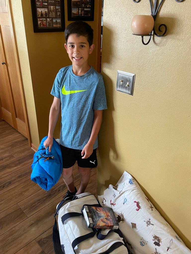 We got him all packed up for camp, too.
