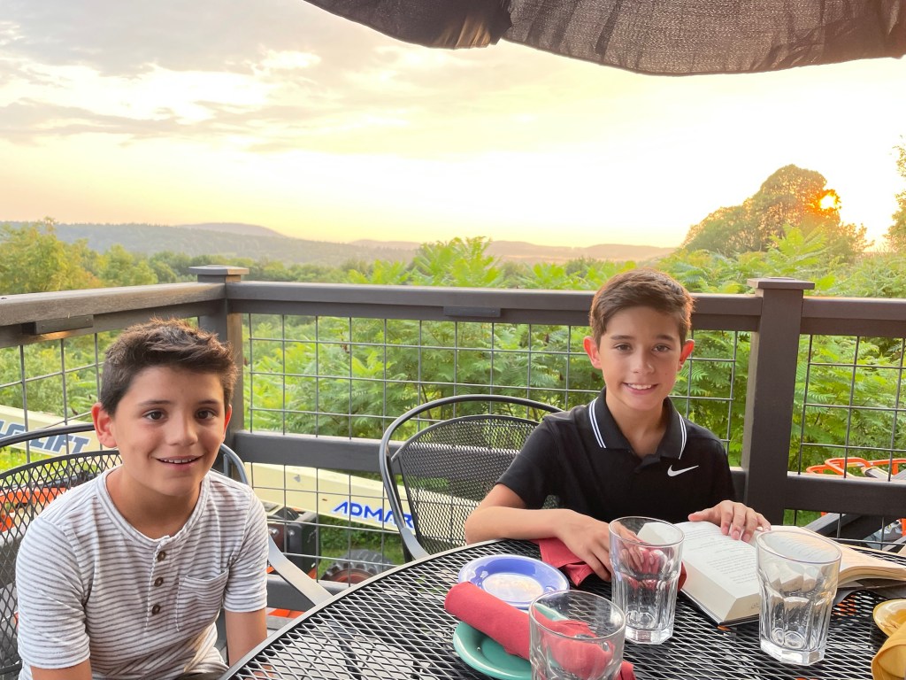* full disclosure that everything is not always perfect… 😉 While the views were beautiful, as soon as the sun set, the mosquitoes come out in FULL FORCE!!! We were dying!! We finally had to ask to move indoors. Fortunately, we were almost done anyway, but it was a bit of a bummer. I guess they come with the territory and all those beautiful trees.