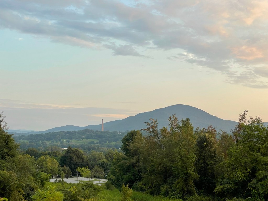 * We had dinner reservations at 7:30, so we took a short drive to check out the town and stopped at the Bennington Battle Monument. It had been cloudy but was clearing up, so I wanted to stop and see the monument as the sky lighting looked pretty. We are going back this morning to go to the top.