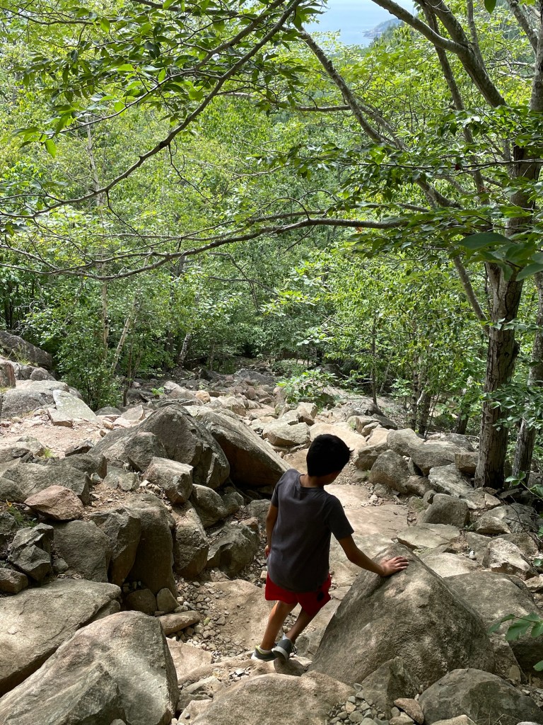 The boys saw this as a prime rock skipping spot, so they stayed behind and skipped rocks to their heart’s content while a few of us hiked the short trail to the peak of the island.