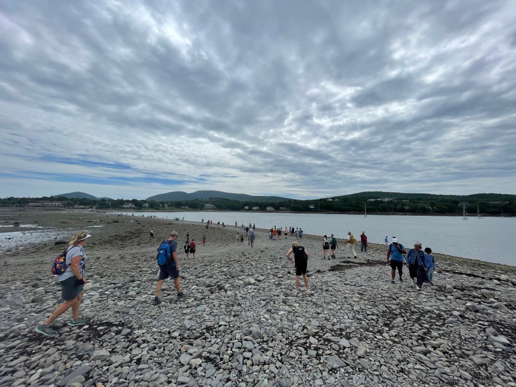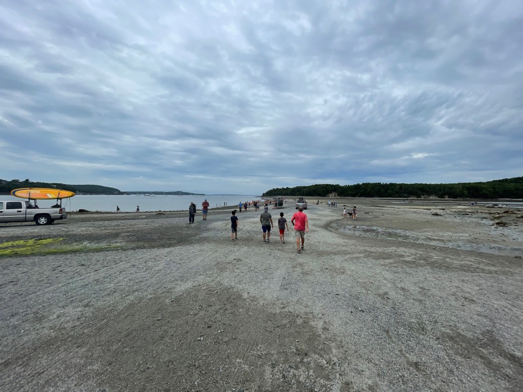 * This is a small island off the coast of Bar Harbor that is only accessible during low tide. During high tide, the whole sand bar area is completely covered with water.