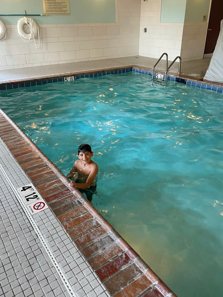 * Got up and finally staked our claim on the hotel pool and hot tub!!! Haha. I guess that other family was so tired from hogging it the whole night before that they slept in to recuperate. 😉 Just kidding.