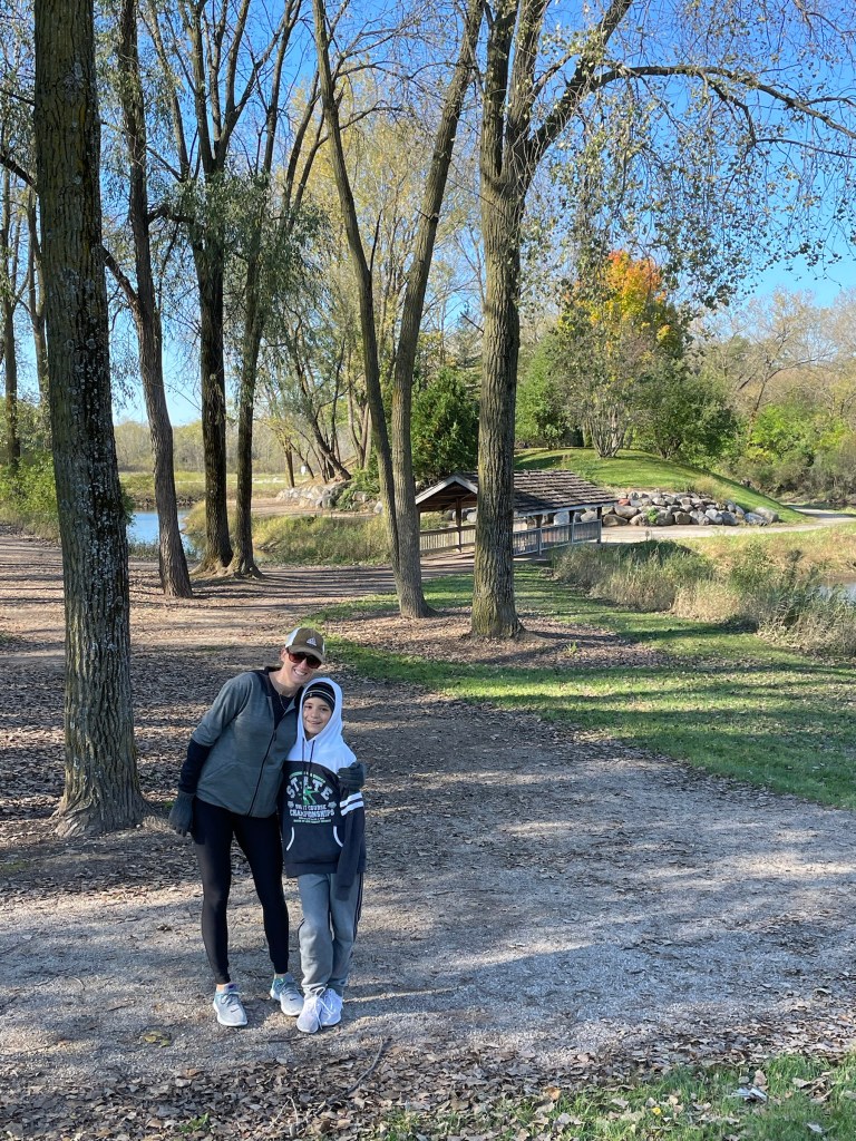 🔷 (Morning): Went for a walk at a nearby local park with Asher and Ivan. (Ethan was in Green Bay for soccer.) It was a little underwhelming- windy and the leaves at that park were not great!! Not sure what happened there…seemed like most of the leaves were either gone already or all dried up and brown looking! Maybe the type of trees?? Oh well. It was not my dream fall walk, but it was family + fresh air + some movement, so it was good enough.